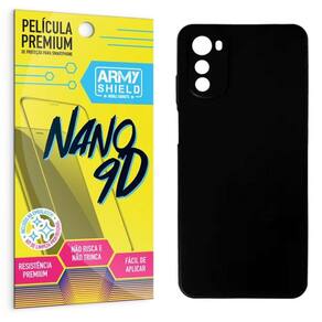 Acompanhando a capa, a Película Cerâmica Nano 9D Blindada - Armyshield é um item indispensável para garantir a proteção total da tela do seu Moto E32. Com alta resistência e cobertura total da tela, ela oferece 99,9% de transparência, permitindo uma visualização clara e nítida.
