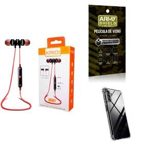Fone de Ouvido Esportivo sem fio KD-901Se você procura um fone para as atividades diárias, exercícios e movimento o fone sem fio KD-901 é a escolha idealContém Tons graves , profundos e complexos. Um verdadeiro som de qualidadeControle a reprodução de músicas e vídeos direto do botão de controle.Atenda e desligue chamadas, microfone HD in line embutido com controle de faixas.Com imã embutido que não atrapalha e não fica caindo da orelha, produto de design intra-auricular projetado para ser confortável ao ouvido. Isolamento de ruídos sem vazamento de som. O fone utiliza uma tecnologia aeronáutica de redução de ruído. Isola interferência de ruído externo. Mergulhe no mundo da músicaEspecificaçãoVersão: V4.2Tempo de espera: 200hTempo de conversação: 6hTempo de reprodução de música: 4hTempo de carregamento: 1.5hFaixa de frequência: 2.402G-2.480GTemperatura ambiente: -20/ +60CDistância de transmissão: 10mEspecificação do DriverUnidade do driver: 10mmSensibilidade: 103dB +-3dBImpedância: 16 +- 15%Resposta de frequência: 20-20000HzComprimento do cabo: 600mm Conteúdo da Embalagem:1und - Fone de Ouvido Esportivo sem fio com microfone HD Atenção: Não acompanha itens não descritos neste anúncio.-------------Capinha Silicone Anti Impacto Anti Shock Transparente - ArmyshieldA capa de celular antishock é um produto de alta qualidade que oferece proteção e estilo para o seu dispositivo móvel. Feita de material de TPU poliuretano termoplástico de alta resistência, a capa é projetada para absorver impactos e proteger o seu celular contra quedas, arranhões e outros danos.A capa antishock transparente é especialmente projetada para se encaixar perfeitamente no seu celular, proporcionando uma cobertura completa e proteção para todas as partes do dispositivo. Ela é transparente, permitindo que você exiba a beleza do seu celular sem comprometer a proteção.-------------Película de Vidro 3D Blindada - ArmyshieldA película de vidro 3D para celular é um produto de alta qualidade que oferece proteção e estilo para o seu dispositivo móvel. Feita de vidro temperado de alta resistência, a película é projetada para se encaixar perfeitamente na tela do seu celular, proporcionando uma cobertura completa e proteção contra arranhões, rachaduras e outros danos.A película de vidro 3D é especialmente projetada para se curvar suavemente ao redor das bordas do seu celular, criando uma aparência elegante e sem bordas. Isso significa que você pode desfrutar de uma experiência de visualização imersiva e sem interrupções, sem se preocupar com a película descolando ou interferindo na sensibilidade da tela.Atenção: O produto acompanha apenas o que apresenta na imagem.