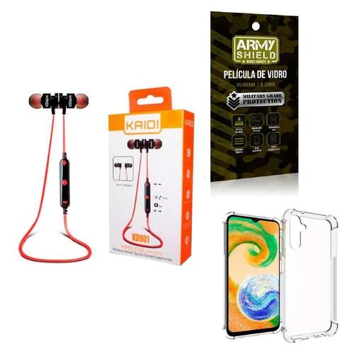 Fone de Ouvido Esportivo sem fio KD-901Se você procura um fone para as atividades diárias, exercícios e movimento o fone sem fio KD-901 é a escolha idealContém Tons graves , profundos e complexos. Um verdadeiro som de qualidadeControle a reprodução de músicas e vídeos direto do botão de controle.Atenda e desligue chamadas, microfone HD in line embutido com controle de faixas.Com imã embutido que não atrapalha e não fica caindo da orelha, produto de design intra-auricular projetado para ser confortável ao ouvido. Isolamento de ruídos sem vazamento de som. O fone utiliza uma tecnologia aeronáutica de redução de ruído. Isola interferência de ruído externo. Mergulhe no mundo da músicaEspecificaçãoVersão: V4.2Tempo de espera: 200hTempo de conversação: 6hTempo de reprodução de música: 4hTempo de carregamento: 1.5hFaixa de frequência: 2.402G-2.480GTemperatura ambiente: -20/ +60CDistância de transmissão: 10mEspecificação do DriverUnidade do driver: 10mmSensibilidade: 103dB +-3dBImpedância: 16 +- 15%Resposta de frequência: 20-20000HzComprimento do cabo: 600mm Conteúdo da Embalagem:1und - Fone de Ouvido Esportivo sem fio com microfone HD Atenção: Não acompanha itens não descritos neste anúncio.-------------Capinha Silicone Anti Impacto Anti Shock Transparente - ArmyshieldA capa de celular antishock é um produto de alta qualidade que oferece proteção e estilo para o seu dispositivo móvel. Feita de material de TPU poliuretano termoplástico de alta resistência, a capa é projetada para absorver impactos e proteger o seu celular contra quedas, arranhões e outros danos.A capa antishock transparente é especialmente projetada para se encaixar perfeitamente no seu celular, proporcionando uma cobertura completa e proteção para todas as partes do dispositivo. Ela é transparente, permitindo que você exiba a beleza do seu celular sem comprometer a proteção.-------------Película de Vidro 3D Blindada - ArmyshieldA película de vidro 3D para celular é um produto de alta qualidade que oferece proteção e estilo para o seu dispositivo móvel. Feita de vidro temperado de alta resistência, a película é projetada para se encaixar perfeitamente na tela do seu celular, proporcionando uma cobertura completa e proteção contra arranhões, rachaduras e outros danos.A película de vidro 3D é especialmente projetada para se curvar suavemente ao redor das bordas do seu celular, criando uma aparência elegante e sem bordas. Isso significa que você pode desfrutar de uma experiência de visualização imersiva e sem interrupções, sem se preocupar com a película descolando ou interferindo na sensibilidade da tela.Atenção: O produto acompanha apenas o que apresenta na imagem.