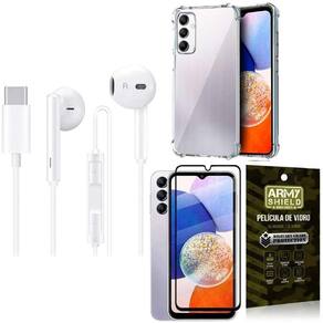 Kit Capinha AntiShock Transparente + Película de Vidro 3D + Fone de ouvido Tipo C estéreo com microfone