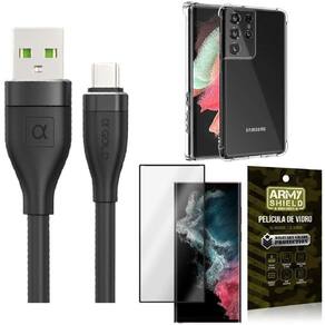 Capinha Antishock Transparente + Película de Vidro 3D Blindada + Cabo Tipo C 2 Metros Turbo
