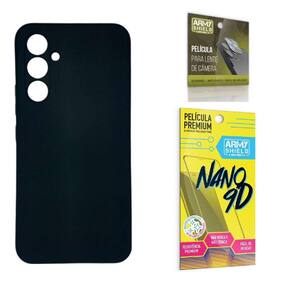 Proteja o seu Galaxy M14 com estilo e segurança, adquira agora a Capinha Preta Galaxy M14 + Película 9D + Película De Câmera da ArmyShield. Ean: 7898945623421