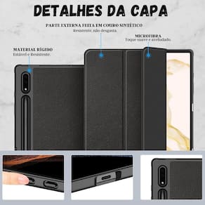 Capinha slot caneta tpu para galaxy tab s8+ 12.4 + película Cor: preto você já passou por aquela situação em que derrubou seu tablet e se assustou ao ver que a tela quebrou Sabemos que isso pode ser uma grande dor de cabeça, mas temos a solução perfeita para você esta capa é projetada com um slot para caneta que permite fácil acesso e armazenamento de sua caneta. Além disso, a textura de silicone na parte externa da capa proporciona uma aderência confortável e segura para segurar seu tablet sem deslizar enquanto carrega. Mantém a aparência elegante do seu dispositivo por mais tempo. imagine ter sua caneta sempre à mão, sem ter que se preocupar com a possibilidade de perdê-la. Com capa de silicone, você pode ter certeza de que seu tablet está protegido e pronto para ser em qualquer lugar, a qualquer momento. ------------------ Atenção ------------------ Compatível com samsung tab s7fe t730 t735 2021 / s8 plus x800 x806 2022 / s7 plus t790 t796 2020 . ------------------ ------------------ posso usar a capa com película R: sim, você pode usar a capa junto com a película sem problema, a case não interfere no uso da película. a capa possui compartimento para guardar a caneta R: sim, a capa possui o slot para a caneta. quais são os modelos compatíveis R: compatível com samsung tab s8 plus x800 x806 2022 . ------------------ Especificações ------------------ Comprimento: 28.5 cm. Largura: 19 cm. Altura: 1cm. Peso: 30g. Material interno: camurça. Material externo: tpu. Compatível com samsung tab s7fe t730 t735 2021 / s8 plus x800 x806 2022 / s7 plus t790 t796 2020 .. ------------------ Conteúdo ------------------ 1x capa magnética. 1x película de vidro. 1x kit limpeza. Anúncio referente a case Tablet não incluso Caneta não inclusa Garantimos a devolução por arrependimento em até 7 dias, após o recebimento e de 15 dias contra defeitos de fabricação. Marca: Não Informado
