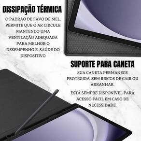 o material de silicone garante proteção para tablet e caneta contra quedas e arranhões, aumentando a durabilidade do dispositivo e a caneta, o slot para caneta incluso garante uma maior proteção enquanto carrega e protege a ponta contra quedas, com tantas qualidades, a aquisição de uma capa de tablet com teclado incluido pode ser uma ótima escolha para quem busca funcionalidade e proteção em um único produto.