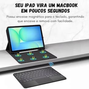 Capinha teclado touchpad para samsung s10 fe+ 13.1 x620 x626 Cor: preto Transforme seu tablet em uma central de produtividade com a capa de silicone com teclado embutido. A capa possui estrutura em silicone resistente, protegendo seu tablet contra quedas, arranhões e impactos. O teclado integrado oferece uma digitação fluida e eficiente - ideal para estudar, trabalhar ou simplesmente navegar com mais agilidade. E o melhor ele é removível, facilitando o uso em diferentes situações. Com fixação magnética, seu tablet fica estável e seguro durante o uso, mesmo em superfícies instáveis. E para completar, o slot lateral permite acomodar sua caneta, protegendo a ponta e facilitando o transporte. Funcionalidade, proteção e praticidade em um só produto. Leve o seu agora e eleve a experiência com seu tablet ------------------ Atenção ------------------ Compatível com samsung s10 fe+ 13.1 polegadas x620 x625 2025 . Como conectar o teclado com o dispositivo: 1 - ligue o teclado e o bluetooth do seu aparelho. 2 - no teclado, aperte as teclas fn + c. 3 - no aparelho procure o bluetooth com o nome keyboard e conecte. ------------------ ------------------ O teclado é grudado na capa Posso usar a capa com película R: sim, você pode usar a capa junto com a película sem problema, a case não interfere no uso da película. O teclado funciona via bluetooth R: sim ele se conecta ao tablet via bluetooth e é recarregável com o cabo incluso. Tem suporte para caneta R: sim a capa possui slot lateral para caneta, ideal para guardar com segurança e proteger a ponta. ------------------ Especificações ------------------ Capa com teclado embutido Material: silicone macio e resistente Teclado: embutido e removível Conexão: bluetooth sem fio Bateria do teclado: recarregável via cabo usb incluso ------------------ Conteúdo ------------------ 1x capa magnética. 1x teclado. 1x cabo usb. Anúncio referente a case Acessórios que ambientam as fotos não inclusos. ------------------ Apresentação: ------------------ - qualidade garantida. - atendimento qualificado. - enviamos para todo o brasil. - compra garantida. - despachamos em até 1 dia útil após confirmação do pagamento Garantimos a devolução por arrependimento em até 7 dias, após o recebimento e de 15 dias contra defeitos de fabricação. Homologação Anatel: 001941400160