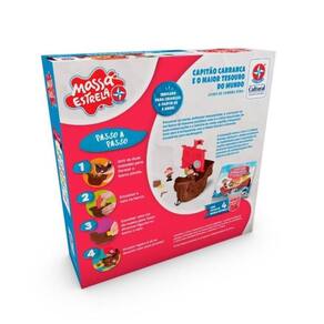 Percorrer os mares, enfrentar tempestades e aventurar-se em busca de tesouros perdidos: essa é a rotina dos piratas em suas embarcações e a história do nosso capitão rabugento! A história é enriquecida com a Massa Estrela e diversos acessórios para modelagem, criando uma experiência interativa. A interação entre o livro e a Massa Estrela estimula habilidades motoras e noções espaciais importantes para o processo de alfabetização! Boa leitura e divirta-se! Contém: 1 livro interativo de 24 páginas, 4 potes de 50g de Massa Estrela, 2 formas que se unem para formar a base de um barco, 1 vela com moldes diversos, 1 rolinho e 1 faca.