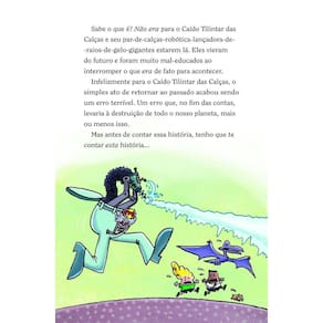 A nona aventura do Capitão Cueca promete muitas emoções com o retorno do maléfico professor Fraldinha Suja… ou melhor, o Caído Tilintar das Calças! Jorge e Haroldo estão atrás das grades por um crime que não cometeram… O pior é que quem os tira da prisão é o malvado Caído Tilintar das Calças, que os leva para uma nova viagem no tempo. Agora, os meninos estão de volta aos dias despreocupados do jardim de infância, quando a coisa mais assustadora que precisavam enfrentar não era um cientista mal-intencionado ou alienígenas prontos para destruir a Terra, mas um valentão da sexta série chamado Kipper Krupp, sobrinho do diretor, sr. Krupp. E, já que Jorge e Haroldo só inventaram o Capitão Cueca na quarta série, eles estão sozinhos nessa. Serão eles capazes de vencer usando a inteligência e não o poder do cuecão? Essa edição vem acompanhada por: ? “Vire o game”: páginas animadas pelo próprio leitor. ? Curiosidades sobre Dav Pilkey, o criador da série. ? Um passo a passo para desenhar o Jorge. Livro indicado para leitores a partir de 6 anos.