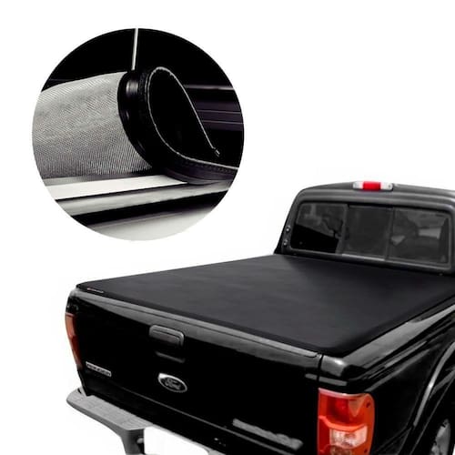 Sistema de fechamento seguro por não permitir a abertura da lona externamente com a tampa da picape fechada.