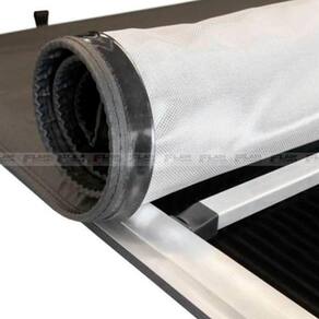 Sistema de acionamento conta com puxadores anatômicos, tensores encurvados que inibem o acúmulo d’água e uma estrutura de fixação em alumínio com borracha E.V.A por toda extensão da capota, proporcionando um excelente acabamento, além de proteger a caçamba.