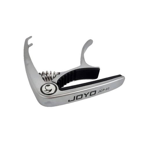 autorizada Joyo Brasil. Capotraste de metal da marca Joyo, modelo JCP-03 para Violão e Guitarra na cor prata. Características: - Alumínio - Se encaixa perfeitamente em todos os tipos de braços de violão ou guitarras. - De fácil e rápida aplicação - C ou G, Db ou Ab, D ou A, Eb ou Bb, E ou B, F Ean: 6972716326047