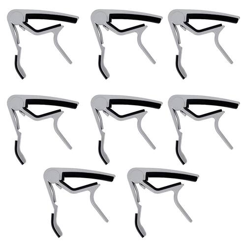 O Kit 8 Capotrastes Braçadeira De Alumínio Guitarra/Violão é perfeito para músicos que desejam explorar diferentes sonoridades em suas performances. Composto por 8 capotrastes de metal, ele oferece a praticidade de trocar de posição rapidamente durante a execução musical.