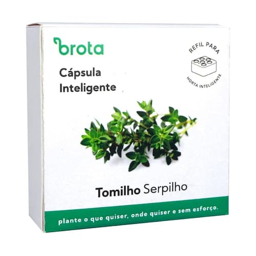 A Cápsula Tomilho para Horta Autoirrigável Brota oferece uma maneira prática de cultivar tomilho em casa. Com um sistema de plantio autônomo, essa cápsula garante a germinação e crescimento saudável do tempero.