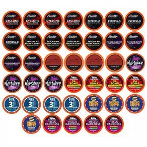 Two Rivers Coffee Bold Dark Roast capsulas compatíveis com Keurig 1.0 e 2.0 K Cup, pacote de amostras variadas 40 unidaes Sabor Bold Roast Tamanho 40 unidades. Os que escolherem ser os escolhem este pacote de variedade de café único e arrojado. Perfeito para os amantes de um bom café forte.
