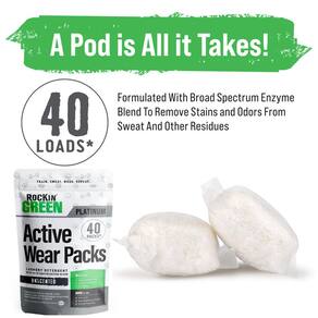 Cápsulas de detergente para roupas ativas Rockin Green, 40 unidades – cápsulas de detergente natural sem fragrância – Elimina manchas e odores difíceis – Detergente ecológico e orgânico para cápsulas de lavanderia