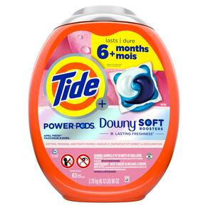 Tide Cápsulas de detergente para roupas 2 em 1 Power PODs com impulsionadores macios Downy, frescor duradoura com aroma fresco de abril, 63 unidades