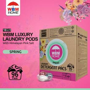 WBM Cápsulas de detergente para roupas domésticas, fragrância de primavera, 96 unidades - cápsulas concentradas HE com 10 x limpeza ultra potente e removedor de manchas 4D