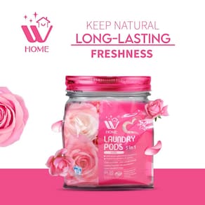 - As cápsulas de detergente doméstico WBM são macias, amigas da pele e se dissolvem rapidamente na água. Eles são enriquecidos com extrato de rosa natural para uma limpeza suave e eficaz.
