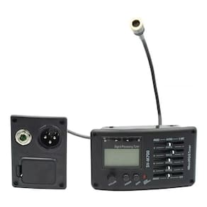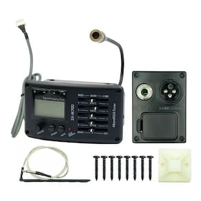1 x equalizador de 5 bandas com afinador em lcd 1 x captador de rastilho - piezo cerâmico 1 x base de montagem- bateria e xlr e p10 1 x grampo adesivo com fita de nylon para a fixação dos fios 8 x parafusos de montagem
