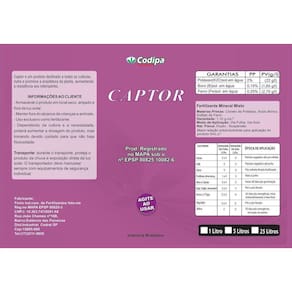 Captor Folhas 5 litros, para uso na agricultura em geral, desde agricultura familiar a agricultura de grande porte.