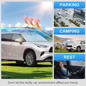 Para-sol para carro - ?Específico do veículo e ajuste personalizado perfeito?Para-sol PinBaoLaLa compatível com acessórios Toyota Highlander 2020, 2021, 2022, 2023, 2024 e 2025. Cobre totalmente o seu para-brisa, sem lacunas, ajuste 100% perfeito. Oferece desempenho superior em condições de clima quente, garantindo que seu carro permaneça mais frio - ?Durabilidade em que você pode confiar?Feito de poliéster 240T premium, nosso para-sol de para-brisa é projetado para durar e resistir ao desgaste ao longo do tempo, bloqueia 99,79% dos raios UVA e 99,95% dos UVB e FPS 100 e FPS 50+. Mantenha o seu carro mais fresco e evita que os assentos de couro rachem e desbotem. Ótimos acessórios internos de proteção térmica para o para-brisa do seu carro - ?Compacto e fácil de usar?pop-up, instale e dobre em segundos! O design dobrável permite fácil armazenamento na bolsa incluída, tornando-o fácil de usar diariamente. Perfeito para quem procura opções dobráveis de para-sol para para-brisas - ?Proteção solar aprimorada?Você passou muito tempo no sol, compre agora. Por favor, não perca tempo, rejeite o calor. Este para-brisa de carro é essencial para uma condução confortável. Além disso, quando você viaja de carro ou precisa de uma soneca, estas persianas de para-brisa de ajuste personalizado podem bloquear 99,79% do brilho do sol e dos raios UV, dando a você e sua família mais proteção - ?Atendimento ao cliente para satisfação?Os protetores de sol PinBaoLaLa são personalizados para acessórios Highlander, específicos para veículos. Observe o modelo do carro, ano e versão antes de fazer o pedido. Se houver alguma dúvida sobre o item ou uso, sinta-se à vontade para entrar em contato conosco, ajudaremos você a resolver o problema com atendimento ao cliente amigável e resposta rápida