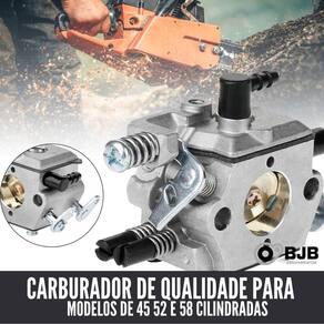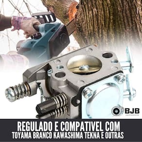 CARBURADOR DE MOTOSERRA 42 A 58CCCompatibilidade: Motosserras da marca Toyama - Tekna - Vulcan - Kawashima- Terra e outras Embalagem: 1 Carburador COMPLETO e Regulado Marca: Bjb Equipamentos
