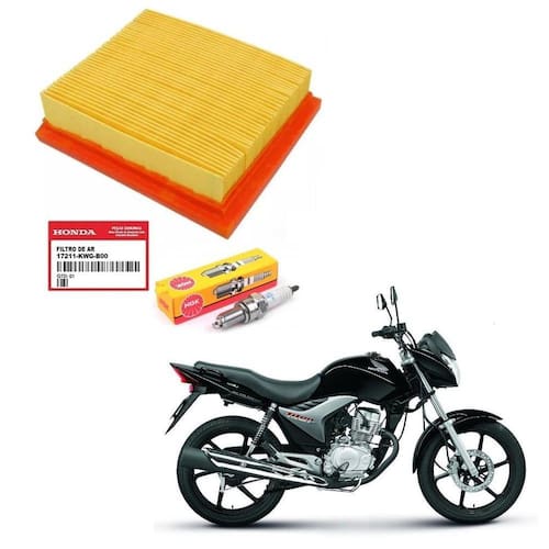 Itens inclusos: 01 Filtro De Ar - 01 Vela Compativel Com: Honda Cg 125 - Honda Cargo 125 - Honda Titan 125 - Honda Fan 125 Para Os Anos De 2009 Ate 2013 Honda Bros 125 - Honda Nxr 125 Para Os Anos De 2009 Ate 2015 Honda Bros 150 - Honda Nxr 150 Para Os Anos De 2003 Ate 2015 Honda Honda Cg 150 - Honda Titan 150 - Honda Cargo 150 - Honda Fan 150 Para Os Anos De 2009 Ate 2013 Honda Bros 160 - Para Todos Os Anos Honda Xre 190 - Para Todos Os Anos Marca Fabricante Filtro: Honda Marca Fabricante Vela: Ngk Codigo Filtro Honda: 17211-MGZ-D00 Modelo Oleo: 4t Semissintetico Api Sl 10w30 Modelo Vela: Cpr8ea-9 Disponibilidade Imediata