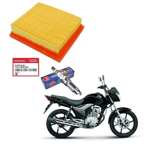 Itens inclusos: 01 Filtro De Ar - 01 Vela Compativel Com: Honda Cg 125 - Honda Cargo 125 - Honda Titan 125 - Honda Fan 125 Para Os Anos De 2009 Ate 2013 Honda Bros 125 - Honda Nxr 125 Para Os Anos De 2009 Ate 2015 Honda Bros 150 - Honda Nxr 150 Para Os Anos De 2003 Ate 2015 Honda Honda Cg 150 - Honda Titan 150 - Honda Cargo 150 - Honda Fan 150 Para Os Anos De 2009 Ate 2013 Honda Bros 160 - Para Todos Os Anos Honda Xre 190 - Para Todos Os Anos Marca Fabricante Filtro: Honda Marca Fabricante Vela: Iridium Ngk Codigo Filtro Honda: 17211-MGZ-D00 Modelo Oleo: 4t Semissintetico Api Sl 10w30 Modelo Vela: Cpr8eaix-9 Disponibilidade Imediata