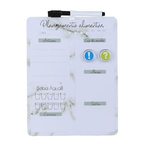 Benefícios do Produto Organização semanal planeje todas as refeições da família e economize tempo na cozinha. Versatilidade de uso pode ser fixada na parede ou em superfícies metálicas como a geladeira. Fácil de limpar escreva, apague e atualize o cardápio quantas vezes quiser. Design compacto tamanho ideal para ser visualizado com facilidade (28 21,5 cm). Praticidade para o dia a dia ajuda a manter uma dieta equilibrada e evita esquecimentos.