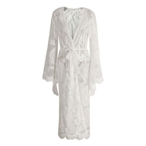 Design de renda elegante: com belos padrões de renda e mangas largas, esta capa de praia exala elegância e adiciona um toque chique ao seu look de praia. Respirável e confortável: feita de um tecido leve e respirável, esta capa de praia garante conforto, mantendo você fresco durante dias ensolarados na praia ou relaxando à beira da piscina. Proteção solar: esta capa em estilo cardigã é perfeita para proteger sua pele dos nocivos raios UV enquanto você relaxa ao ar livre, tornando-a ideal para a praia ou resort. Ajuste agradável: o comprimento longo e a gravata ajustável na cintura proporcionam uma silhueta atraente, oferecendo uma aparência descontraída e moderna sobre sua roupa de banho. Versátil para qualquer ocasião: perfeita para férias na praia, relaxamento à beira da piscina ou usar em resorts, essa capa de renda complementa facilmente sua roupa de banho para uma proteção solar elegante.