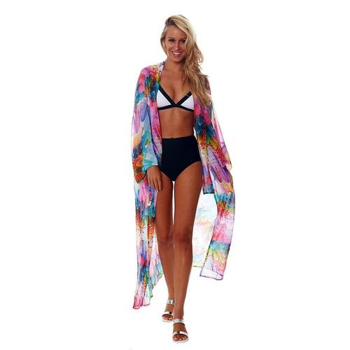 Design vibrante com estampa de penas: esta capa de praia apresenta uma estampa de penas deslumbrante em uma mistura de cores vibrantes, adicionando um toque animado e divertido à sua coleção de roupas de banho. O design fluido garante que você se destaque em qualquer ambiente de praia. Ajuste descontraído e confortável: com um ajuste solto e arejado e mangas compridas e esvoaçantes, esta capa de praia oferece o máximo de conforto e liberdade de movimento, perfeita para colocar sobre o maiô. Perfeita para a praia e a piscina: ideal para usar sobre biquínis ou roupas de banho, essa capa é perfeita para relaxar na piscina, passear na praia ou como uma peça elegante de resort. Proteção UV: Esta capa oferece proteção UV leve para manter sua pele protegida do sol e, ao mesmo tempo, manter a respirabilidade nos dias quentes de verão. Roupa de resort versátil: o design brilhante e colorido torna essa capa um ótimo complemento para o guarda-roupa do resort, perfeita para passeios diurnos à praia e jantares noturnos.