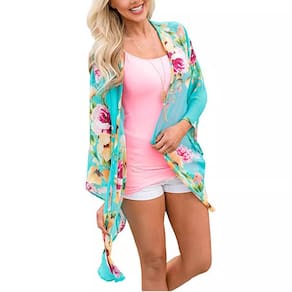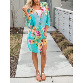 Cardigã de quimono com capa de praia com estampa floral para mulheres