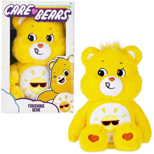 Os Care Bears são um grupo de BFFs que vivem essa doce vida carinhosa e que melhor maneira de você se juntar à diversão do que com o novo Care Bears Funshine Bear Medium Plush. Funshine Bear tem 14 polegadas de tamanho, perfeito para abraços ilimitados de urso, e pronto para você assumir suas aventuras de compartilhar e cuidar! Colete todos os 6 cuidados de pelúcia média dos ursos hoje! Os Ursos De Cuidados voltaram! Lançando neste verão, a icônica marca dos anos 80 e a expressão de to coletes de brinquedos estão prontas para conhecer toda uma nova geração de crianças! Apresentando os Care Bears mais amados em todas as novas estilizações, cores vibrantes, e com recursos legais, será difícil escolher qual levar para casa!