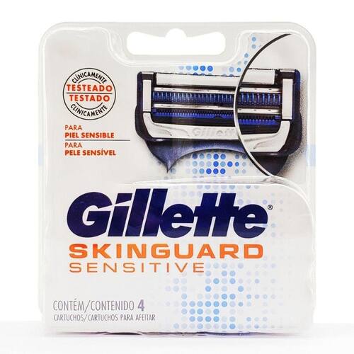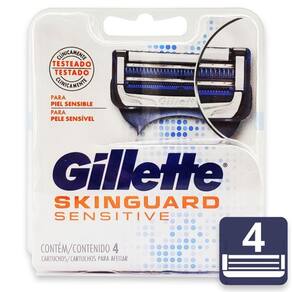 Os refis de lâminas gillette skinguard sensitive são as primeiras cargas de barbear com uma exclusiva barra protetora skinguard entre as lâminas para depilar e proteger a pele. O skinguard reduz o contato da lâmina com a pele. Cada refil também possui 2 lâminas de baixa força de corte com espaçamento ideal para minimizar puxões, assim como lubrificação antes e depois das lâminas para minimizar o atrito e proteger a pele contra irritações.