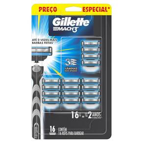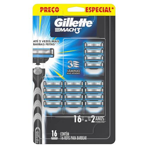 REFIL PARA BARBEAR GILLETTE MACH3 PREÇO ESPECIAL Carga para Lâmina de Barbear Os refis do aparelho de barbear Gillette Mach3 têm três lâminas mais resistentes que o aço e se mantêm afiadas por mais te
