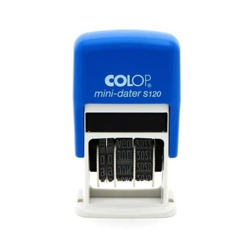 Carimbo pronto Mini datador automático auto-Entintado marca colop data em 4mm de altura, espaço para um nome ex pago, copia, ou até duas linhas, Para todas as versões somente dois tamanhos de almofada de reposição são necessários isto economiza espaço e reduz custos de armazenamento proteção ante vazamento da tinta, acompanha um refil da cor preta compatível com o carimbo, procedência Austrália.