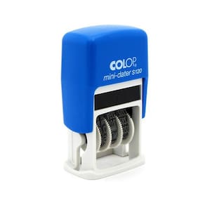 Carimbo Mini Datador S120 Colop Carimbo pronto Mini datador automático auto-Entintado marca colop data em 4mm de altura, espaço para um nome ex pago, copia, ou até duas linhas, Para todas as versões somente dois tamanhos de almofada de reposição são necessários isto economiza espaço e reduz custos de armazenamento proteção ante vazamento da tinta, acompanha um refil da cor preta compatível com o carimbo, procedência Austrália. Características: - Marca: Colop - Modelo: - Funcionalidade: até 1 linhas - Medidas: 25x 0,4 mm - Material: Foto-Polímero material plástico Transparente com proteção ante vazamento da tinta - Cor: Azul - Tinta: Preto - Itens da embalagem: Carcaça Carimbo pronto Automático Print 20 e Refil cor preto Imprime a data. Marca: Não Informado Ean: 9004362338550
