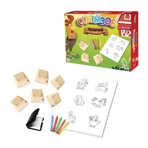 O conjunto de carimbos da Pais e Filhos, é fabricado em madeira de alta qualidade para garantir durabilidade e resistência durante seu uso. Educativo, conta com 6 carimbos com o tema fazendinha, são os bichinhos que moram na fazenda super fofos,5 gizes de cera, 1 carimbeira com tinta Atóxica e 1 bloco de papel para que eles possam carimbar e pintar os animais, garantindo descontração para todos os momentos. Um jogo de artes e linguagem, proporcionando conhecimento, habilidades de identificação, desenvolve a coordenação motora, auxilia na criatividade, na aprendizagem de desenhos e no estímulo ao criar e contar histórias a partir de cenários e personagens. Perfeito para levar muita descontração enquanto estimula o desenvolvimento saudável e criativo das crianças.