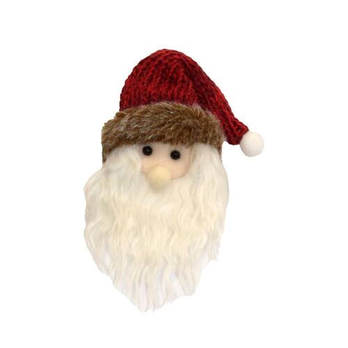 Enfeite Pendente Carinha Papai Noel Pelúcia Scotch com Gorro de Crochê Vermelho 13cm x 10cm