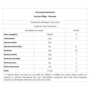 Carnibol 900g - Chocolate Carnibol 900g Carnibol Darkness é um suplemento desenvolvido a base de proteína miofibrilar hidrolisada da carne bovina, propriedade importante na construção muscular. Carnibol Darkness ainda contém peptídeo de proteína da carne, beef albumin e peptídeos de colágeno, além de ser rico em aminoácidos essenciais que auxiliam no ganho de performance durante as atividades físicas. Com sua fórmula de rápida absorção, Carnibol Darkness é uma excelente fonte proteica, que auxilia no aumento da massa, na rápida recuperação e no anabolismo muscular. Carnibol Darkness, intensidade e resultado garantido BENEFÍCIOS: proteína da carne ultra concentrada; ganho de performance; aminoácidos essenciais; rápida absorção; construção e recuperação muscular. Marca: Não Informado