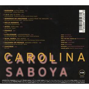 Em seu novo álbum solo, Carolina, Carol Saboya interpreta um repertório que inclui verdadeiras preciosidades da música, compostas por mestres como Antonio Carlos Jobim, Pixinguinha, João Bosco, Edu Lobo, Djavan, Lennon e McCartney e Sting. O novo CD foi produzido por Antonio Adolfo, que também criou os arranjos e é o pianista. Participação de Leo Amuedo violão e guitarra , Jorge Helder baixo acústico , Rafael Barata bateria e percussão , Marcelo Martins flauta / sax soprano e André Siqueira percussão . Gravado no Rio, em Dezembro de 2015, o CD Carolinaestá sendo lançado simultaneamente em vários países. Este novo trabalho de Carol Saboya, certamente será um clássico da MPB. Distribuição da Rob Digital. Marca: Não Informado Ean: 190394252380