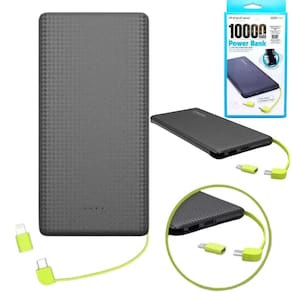 Tipo de produto: power bank Capacidade da bateria: 10.000mah Entrada: micro usb 5v 2a Saída: dc5v 2.1a cabo integrado / dc5v 2.1a porta usb Tempo de carregamento do power bank: 3-5 horas Dimensões: 156 x 77 x 12 mm Peso: 225g