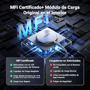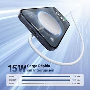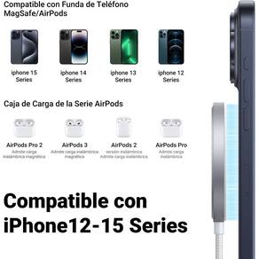 Carregamento rápido sem fio de 15W, design compacto e portátil, material em liga de alumínio resistente ao fogo, sistema de segurança inteligente com 7 proteções (controle de temperatura, proteção contra sobretensão, proteção contra curto-circuito), inclui cabo trançado USB C de 1,5M.Tipo
