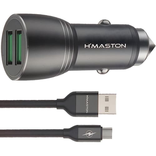 Carregador veicular com 2 entradas USB, saída de energia estável, rápido 4.8A máximo, inclui 1 cabo USB Tipo C.