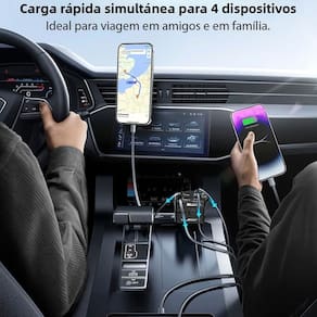 Carregador veicular 4 em 1 com 2 cabos retráteis (USB-C e Lightning) e 2 portas adicionais (USB-C e USB-A). Suporta carregamento rápido de até 4 dispositivos simultaneamente. Possui visor digital que exibe a voltagem da bateria do veículo em tempo real. Proteção contra sobrecarga, sobrecorrente, sobretensão, curto-circuito e controle de temperatura. Plugue ajustável em 180°. Potência total de 120W, com porta USB-C de até 66W e porta USB-A de até 20W. Cabos retráteis com até 75 cm de extensão.Vendido por LEVA PRA MALHAR e entregue por Casas Bahia