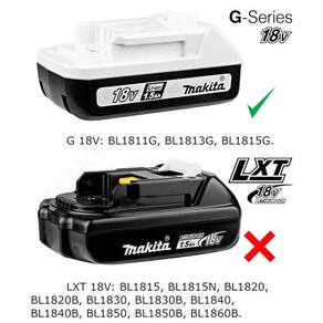 O carregador não funciona com baterias de outras séries de ferramentas além da série g 18v bl1811g, bl1813g, bl1815g, bl1820g e série g 14,4v bl1411g, bl1413g, bl1415g, bl1420g .