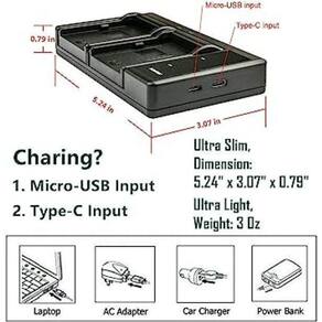 O carregador de bateria duplo digital para canon kastar cb-bp970 possui conexão usb. É inteligente e exibe o status de carregamento e a capacidade da bateria.