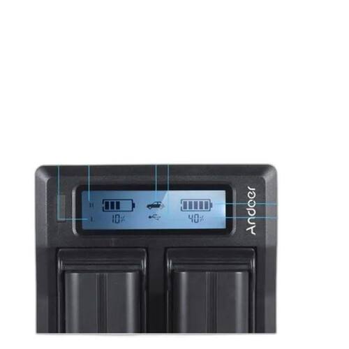 Esse prático e versátil carregador de bateria Andoer possui 2 compartimentos de bateria. Isso significa que você poderá carregar duas baterias ao mesmo tempo.