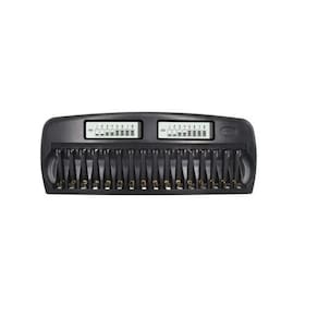 Características principais: Carrega até 16 baterias nimh aa ou aaa recarregáveis. O tempo de carga varia entre 5 horas para baterias aa e 2 horas para aaas. Dezesseis indicadores lcd individuais exibem o status da carga de cada bateria.