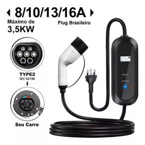 Características principais: PLUGUE: Padrão Brasileiro Bolsa de Armazenamento Entrada: 110 - 220V AC ChargingCurrent: 8-10A-13A-16A ajustável. (Ele irá carregar o seu carro com a mesma corrente da próxima vez.) Comprimento do Cabo: 5 metros Potência: 3.5KW Vida mecânica: plug in/out MAIOR 10000 vezes Impacto da força externa: pode pagar 1m queda e 2t veículo correr sobre a pressão Isolamento resistência:MAIOR 1000MD (DC500V) Terminal temperatura aumento: MENOR 50K Avaliação do fogo do alojamento: UL94V- Control Box Função: Proteção 1. Leakage 2. Proteção de sobretensão ou de baixa tensão Proteção 3. Over-load Proteção 4. Lightning Proteção 5. Over-heat 6. Mude a corrente: 8A/10A/13A/16A Display LED: Temperatura 1. Charging Corrente 2. Charging Tensão 3.Charging 4. Energia Carregada em KW/h 5. Tempo carregado. 6. Conjunto Curren Marca: DM FERRAMENTAS