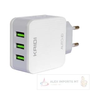 Carregador com fio Kaid Carregador Tomada Ultra Rápido Branco Cabo , Para Carregador portátil de tomada com 3 portas usb mais cabo, carrega ultra rápido. Kaidi tem nome Se for viajar não esqueça do seu carregador Característica: Material do carregador: Abs antichama Voltagem: Bivolt 110/220. Amperes: 3.1 a Entrada: Bivolt 50 60 Hz 0.6 a Saída: Dc 5 v - 3.1 A Max 15.5 w chips inteligentes. Lembre-se , Tudo que é Barato, Sai caro Segurança e , é aqui : Alex Imports MT Marca: Não Informado Ean: 7894010400225
